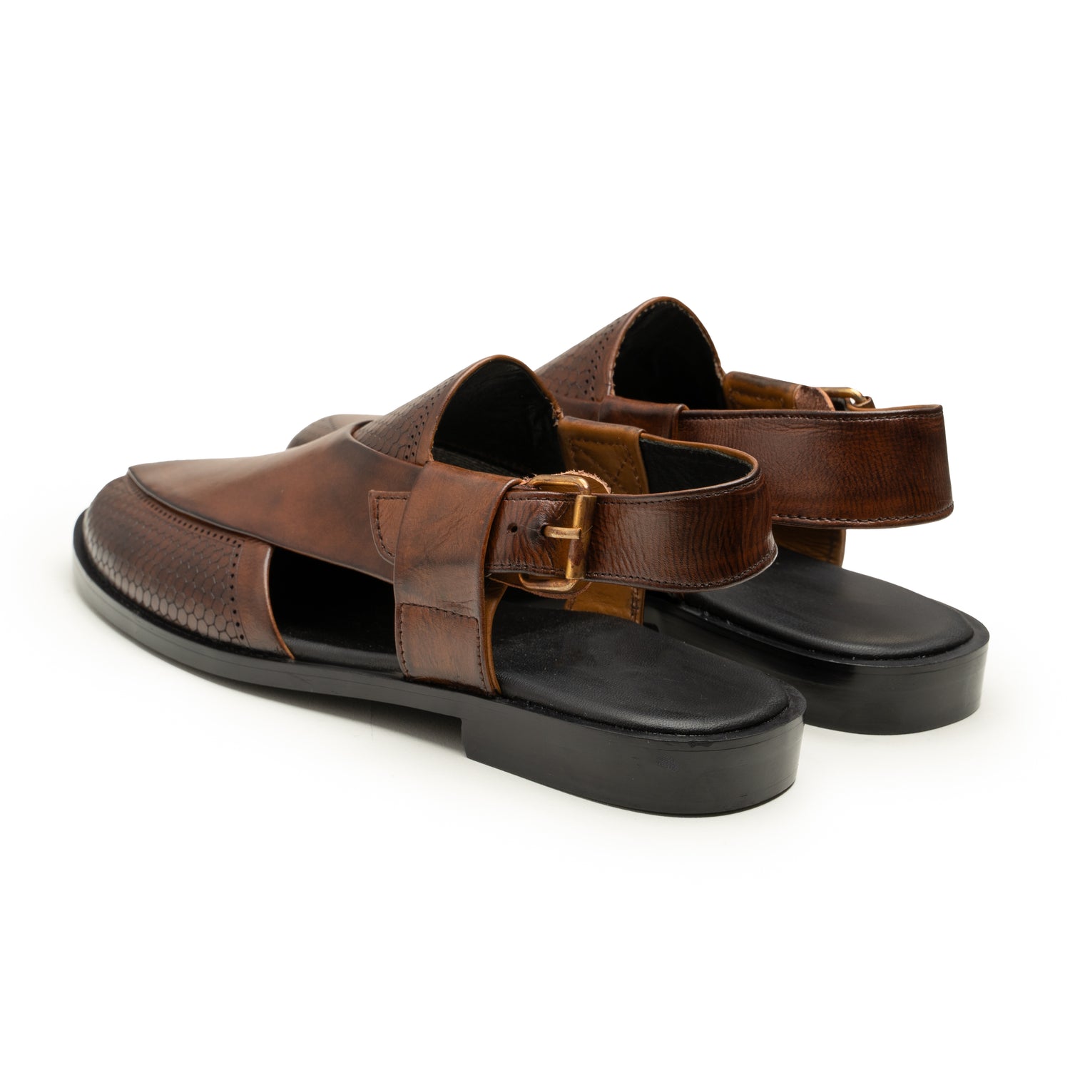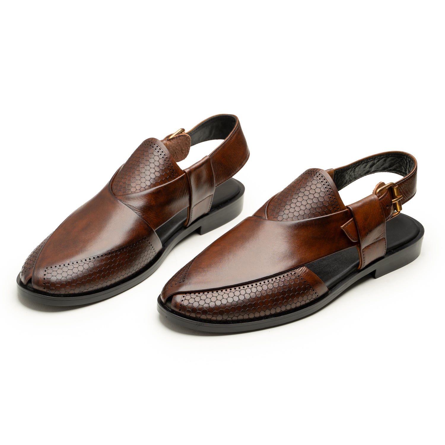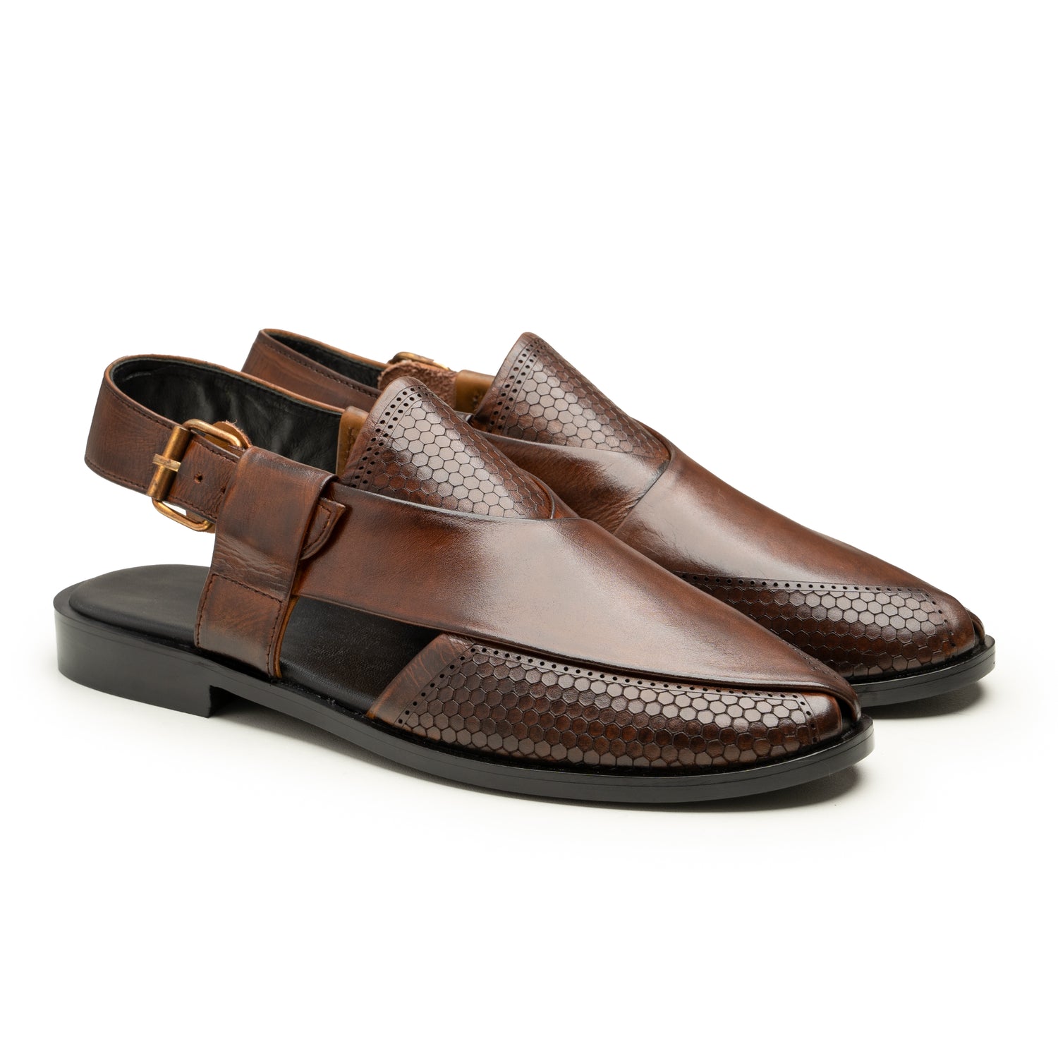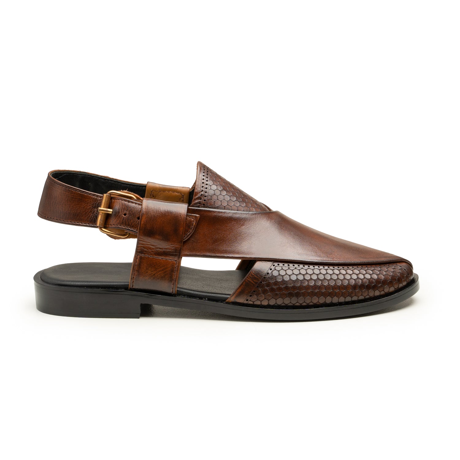 Premium 100% Leather: Made from the finest full-grain leather, this sandal features a stunning combination of textures—a rich, burnished finish on the front and a unique, laser-perforated honeycomb pattern on the side.