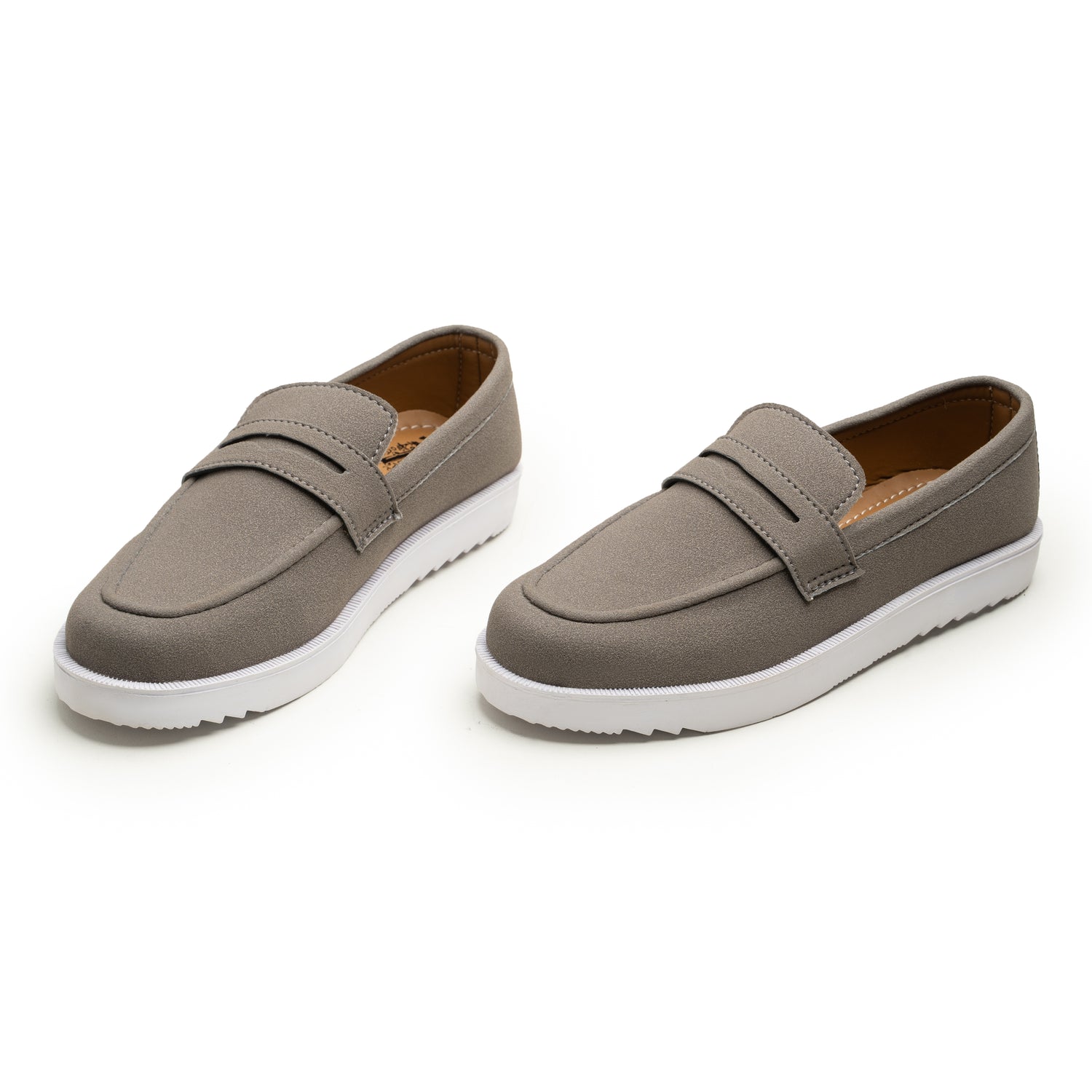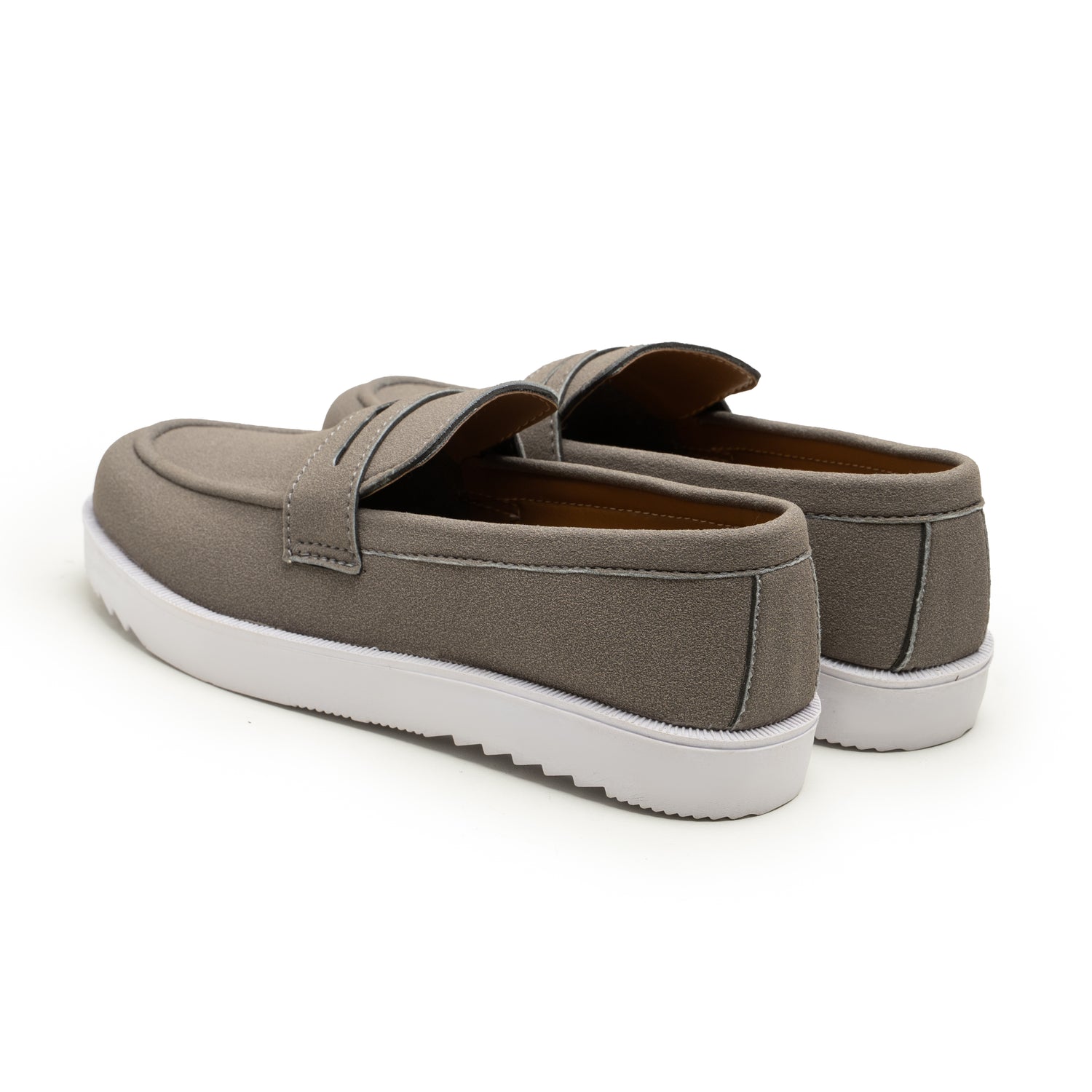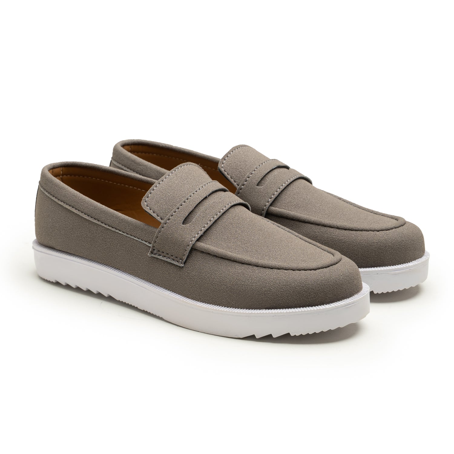 Introducing The Grey Rovers, a modern loafer designed for style and comfort. Handcrafted by WAX DNM, this shoe stands out with its versatile, cool grey upper and a striking, chunky white sole. The upper is made from a high-quality, matte faux leather with a soft, suede-like finish, providing a clean and refined look that is both durable and easy to maintain.