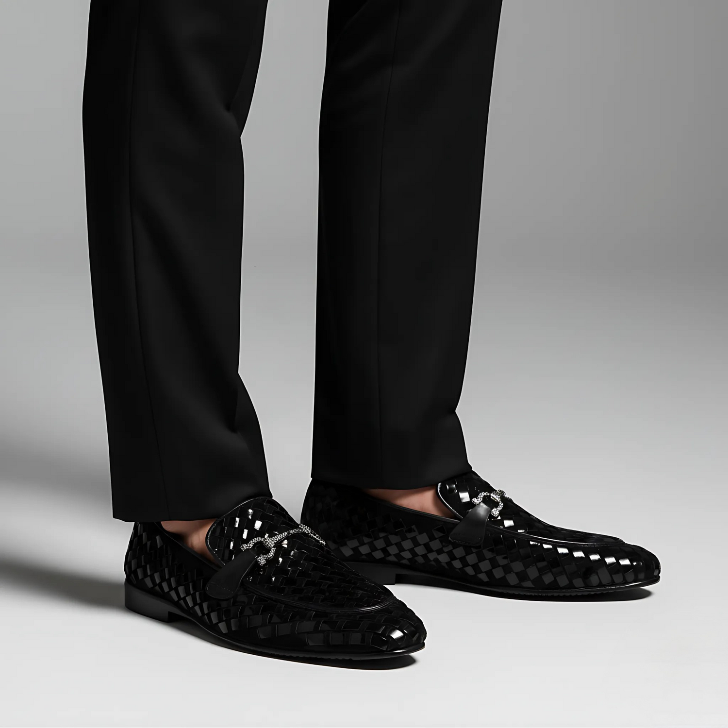 Premium 100% Leather: Crafted from a combination of the finest leathers, The Kingpin features a striking, woven pattern that contrasts with a smooth, rich texture, creating a truly dynamic and luxurious visual.