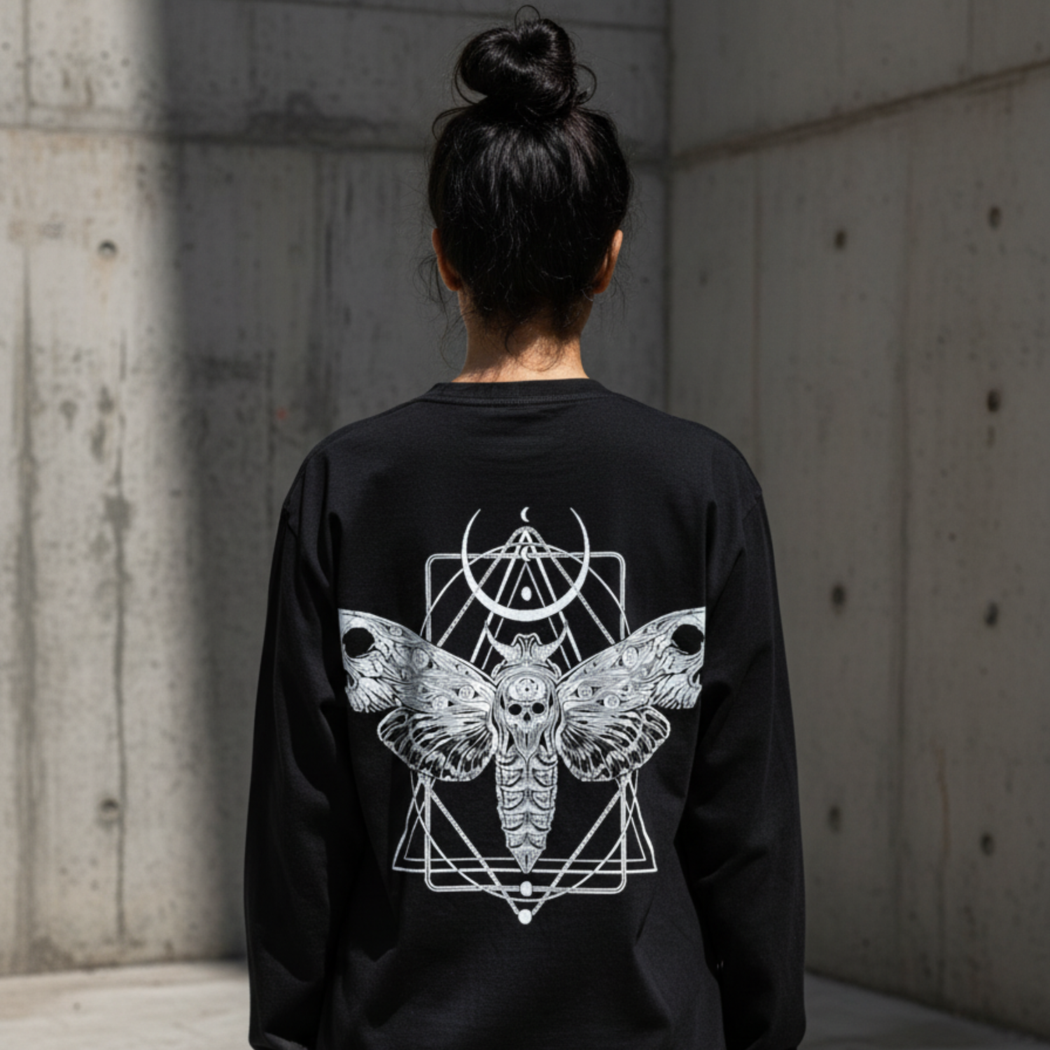 Embrace the enigma of the night with "The Moth" Long Sleeve T-Shirt. Crafted from 100% premium, soft-touch cotton, this long sleeve offers ultimate comfort and breathability, making it perfect for year-round wear.