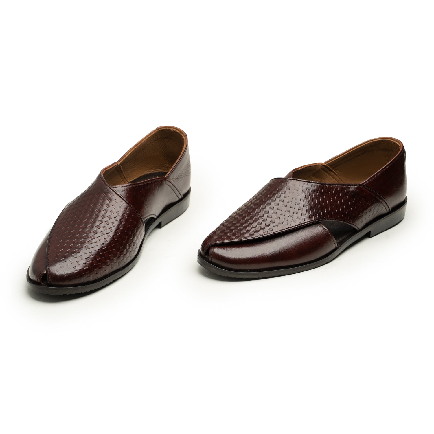 The "Persian Loafer" stands out with its exquisite woven texture across the vamp, providing a captivating visual and tactile contrast to the smooth, polished toe cap and sides. This intricate detail, inspired by classic artisan traditions, gives the shoe a sophisticated and exotic flair. The sleek, low-profile design ensures a refined silhouette that effortlessly complements both traditional and contemporary attire.