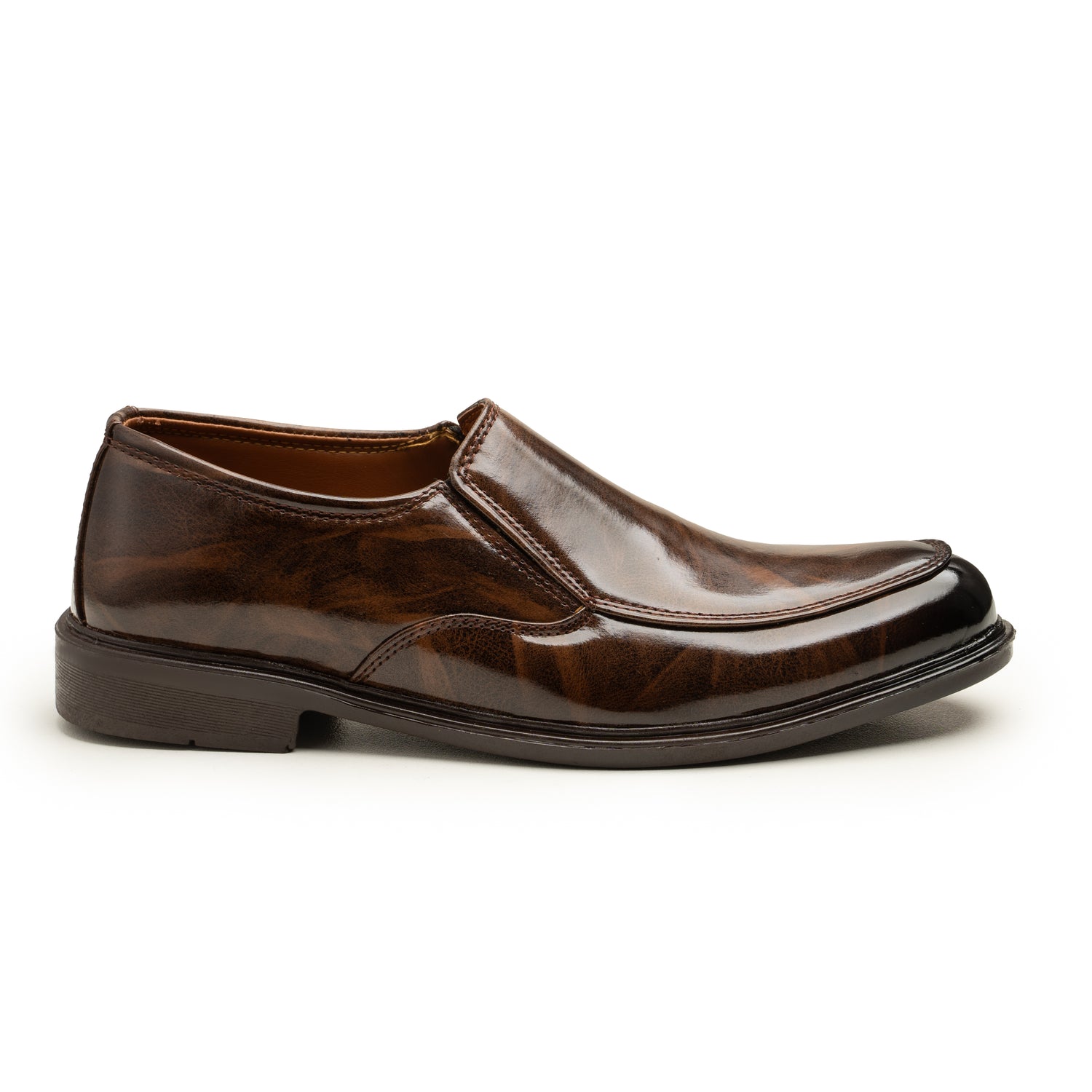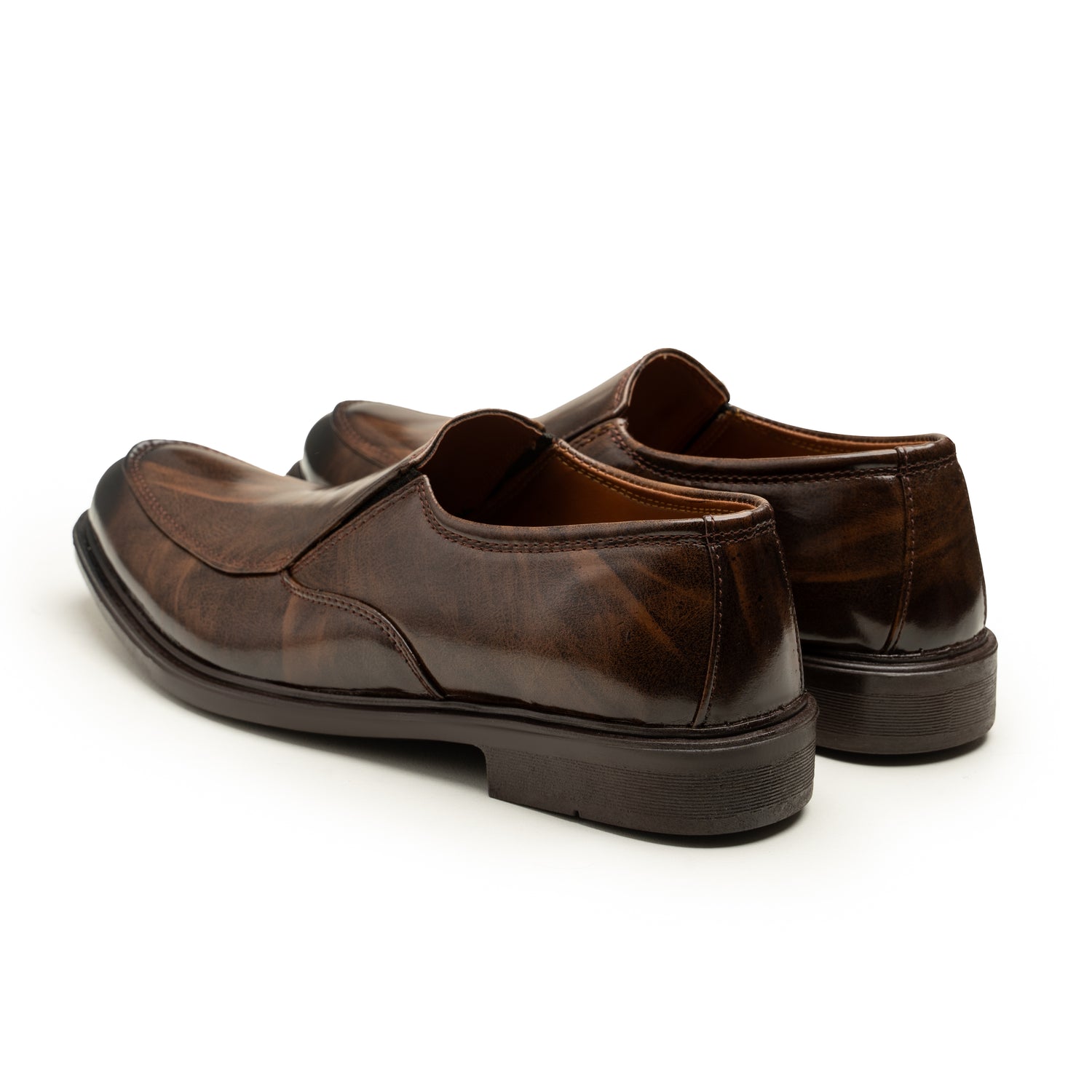 Meet The Vester, a classic men's loafer with a sleek, contemporary edge. Handcrafted with care by WAX DNM, this dress shoe is designed for the man who values both timeless style and modern comfort. The rich, burnished brown faux leather features a distinctive wood-grain texture, creating a sophisticated look that stands out in any setting.