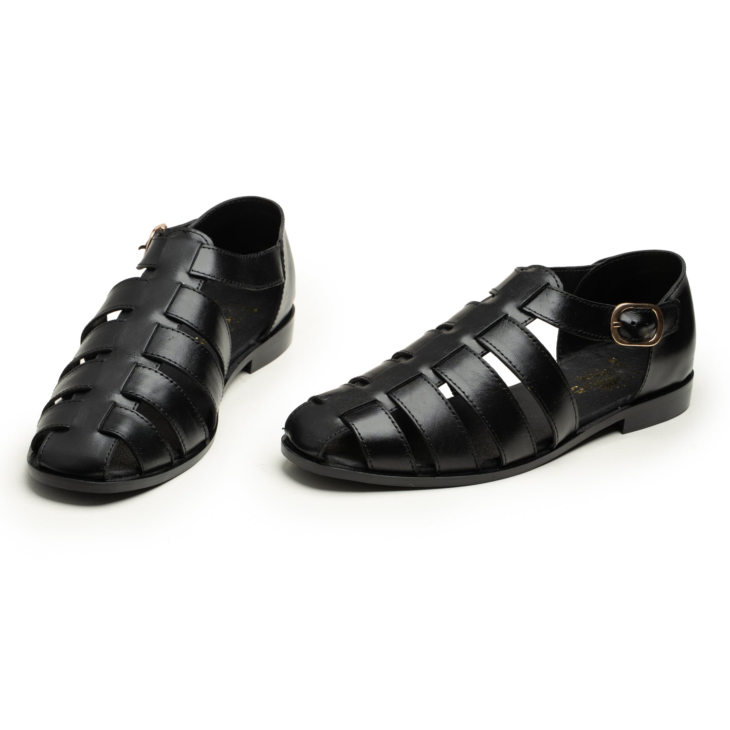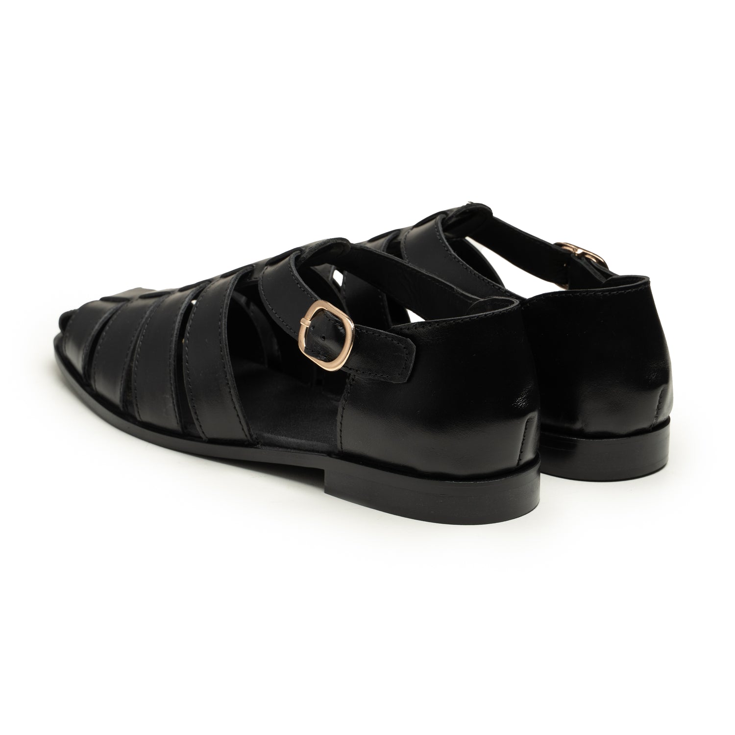 The intricate caged design is both visually striking and highly breathable, offering comfort and support for your journey. A gleaming gold-toned buckle provides an adjustable and secure fit, while adding a touch of sophisticated contrast. Grounded by a sleek, durable sole, The Viking Black is built for both rugged escapades and stylish urban explorations.